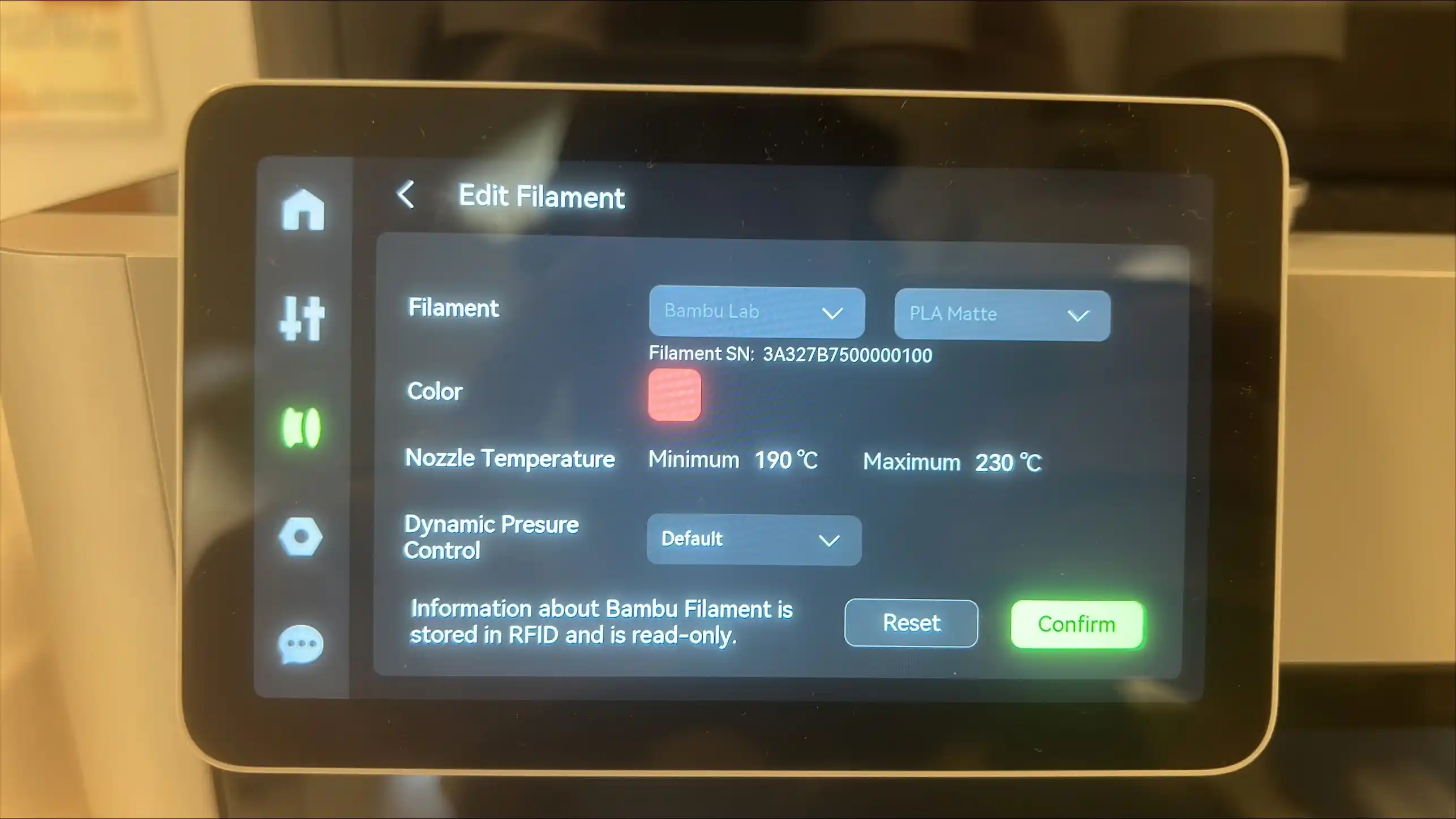 Si la bobine compatible Bambu Lab n’est pas munie d’une puce RFID, il faut indiquer manuellement les caractéristiques du filament après son chargement.