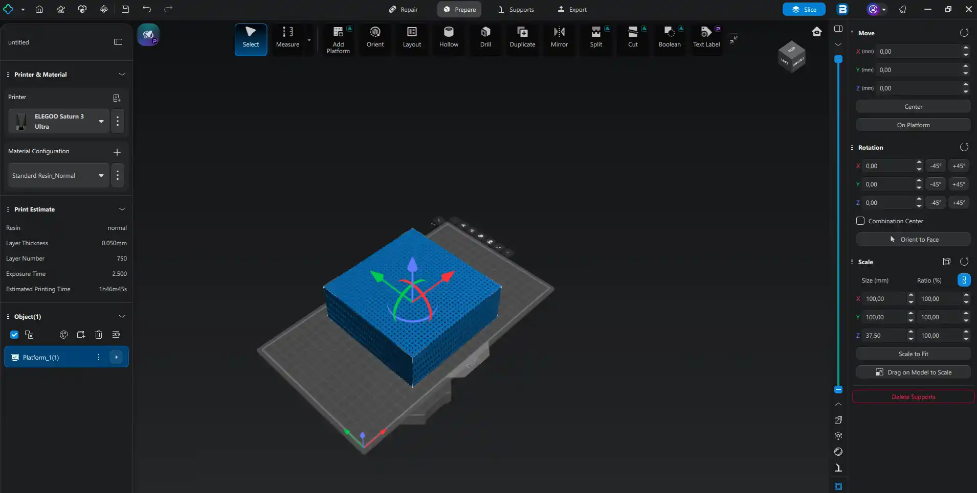 Une fois le modèle prêt il faut le découper et l'exporter vers une clé USB
