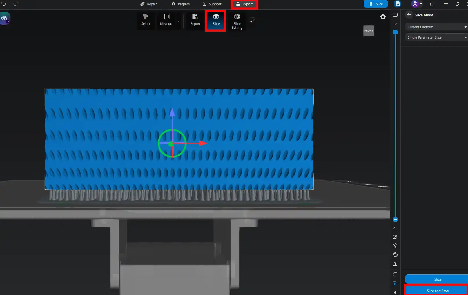 CLiquer sur Export → Slice → Slice and Save → sélectionner l'emplacement de la clé USB dans l'explorateur de fichier