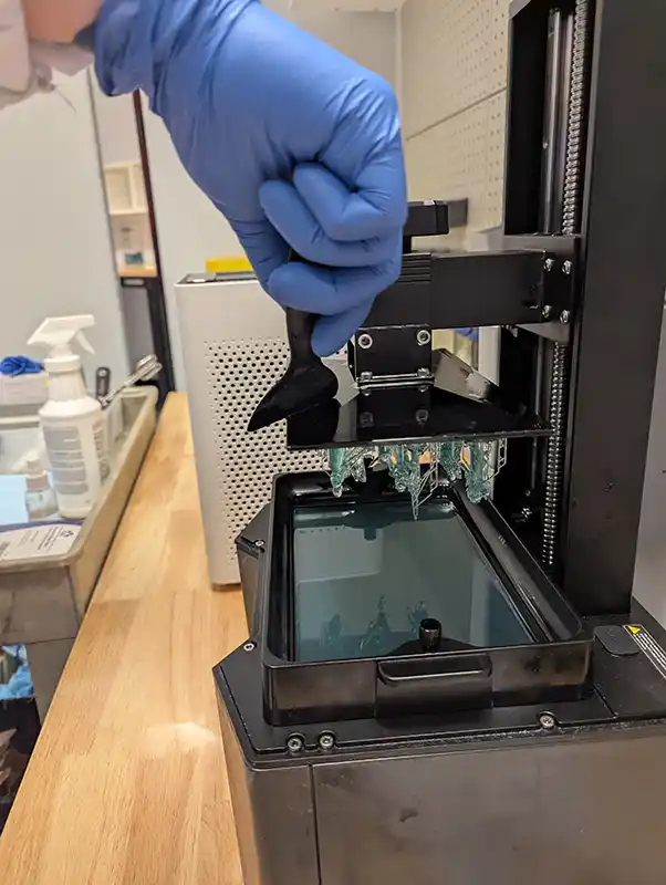 L’avantage de l’impression à résine par rapport à l’impression avec des filaments réside dans sa grande précision. On peut imprimer des petites pièces avec beaucoup de détails mais l’impression demande plus de temps.