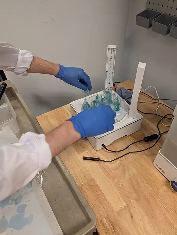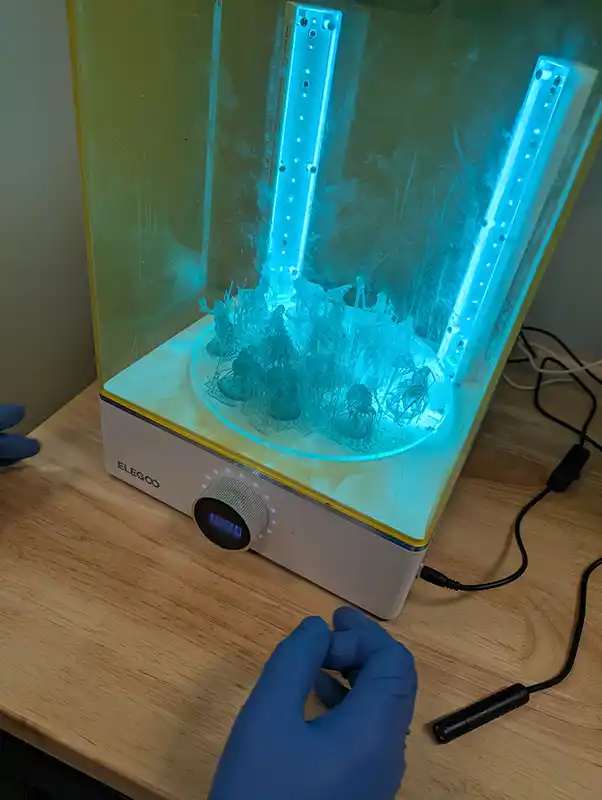- Placer les modèles dans machine à UV pour 5 à 10 minutes (ensuite les laisser sécher sur le rebord d'une fenêtre au soleil)